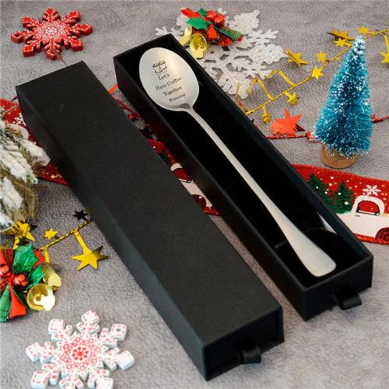This High-quality stainless steel spoon engraved as" Let's Have Coffee Together Forever"'